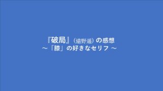 書評『破局』の感想~「膝」の好きなセリフ~ こんにちは!今回は、2020年上期の芥川賞、『破局』(遠野遥、2020.7、河出書房新社)の感想を書きます。テーマは「膝」の好きなセリフです。 あらすじ 主人公は、有名私立大学の四年生「私」で、4月〜6月ごろの出来事が描かれま... 2026.01.12書評